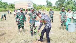 KILASRIAU.COM - Kodim 0321 Rokan Hilir (Rohil) laksanakan penanaman ribuan pohon dalam program penghijaua.