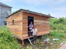 Peduli Sesama, Pengusaha Asal Inhil Berikan Bantuan Bedah Rumah Kepada Seorang Warga Tanjung Harapan