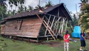 Pemdes Bersama Warga Bergotong Royong Bangun Rumah Syafruddin Akibat Angin Kencang