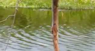 Seekor Buaya Memperlihatkan Diri di Parit 1 Desa Sialang Panjang