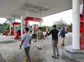 Puskesmas Keritang Hulu Bersama Mahasiswa Giat Penyemprotan Disinfektan