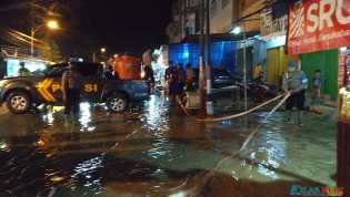 Guna Mengurangi Intensitas Air di Ruas-Ruas Jalan, Polres Inhil Laksanakan Penyedotan Air