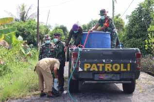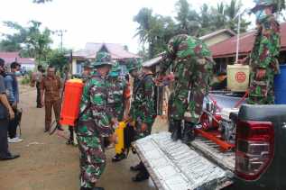 Kodim Inhil Gencar Lakukan Penyemprotan Disinfektan di Dua Desa