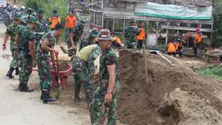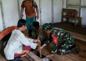 KILASRIAU.com - Anggota Staf Teritorial Kodim 0314/Inhil melakukan gotongroyong me.