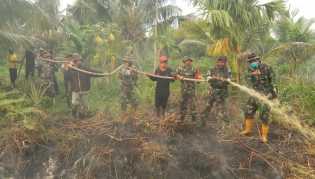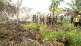 KILASARIAU.com - Koramil 12/Batang Tuaka bersama Polsek Batang Tuaka bahu membahu memadamkan Karhutla yan.