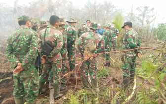 KILASARIAU.com, Gaung Anak Serka - Sejumlah prajurit TNI Angkatan Darat berupaya memadamkan titik api yan.