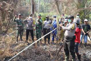 Tinjau Lokasi Kebakaran Lahan di Enok, Kapolres Inhil Langsung Ikut Memandamkan Api