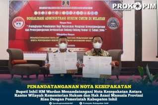 Bupati Inhil Menandatangani Nota Kesepakatan Dengan Kanwil Kemenkumham Provinsi Riau