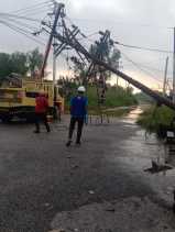 Akibat Angin Kencang dan Hujan Deras Empat Batang Tiang JTM PLN ULP Tembilahan Tumbang