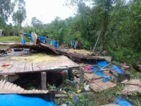Dua Gudang Kayu di Parit 7 Tembilah Abruk Akibat Tanah Longsor