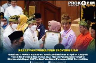 Puncak Hut Riau Ke- 65, Syekh Abdurrahman Ya’qub di Anugrahi Tokoh dan Pejuang Riau 2022