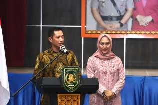 Mantan Kapolres Inhil AKBP Dian Setyawan Bersama Istri Saat Menyampaikan Sambutan
