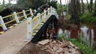 Anggota Koramil 02/Tanah Merah Bersama Warga Bersihkan Area Bangunan Rehab Jembatan di TMMD Ke-123
