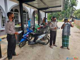 Polsek Hulu Kuantan Sosialisasikan Prokes dengan Berbagi Masker Kepada Jama'ah Shalat Jum'at